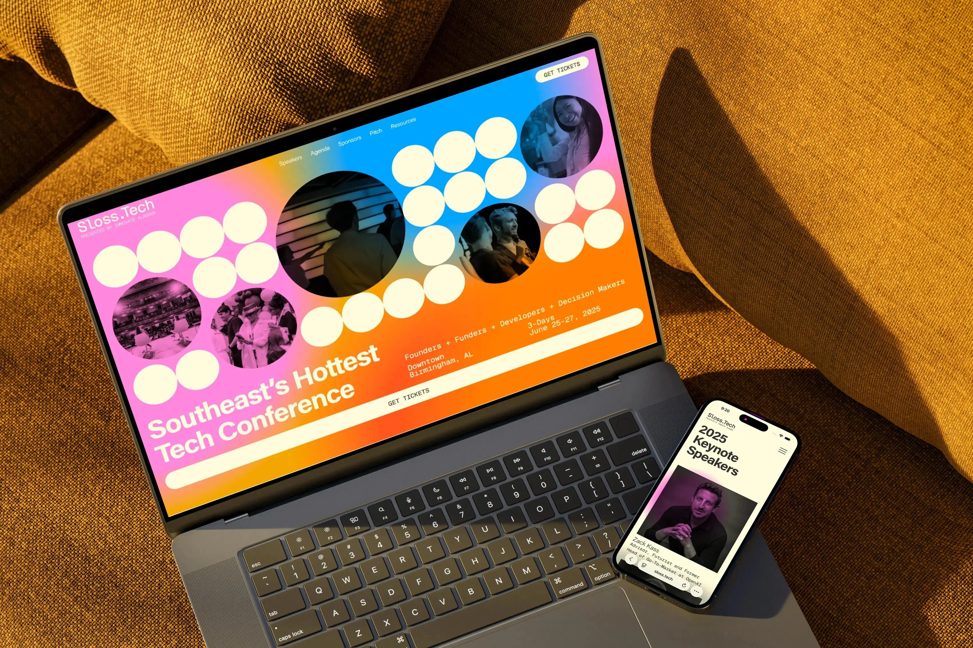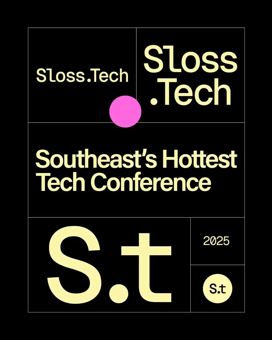 Entering its seventh year, Sloss.Tech stood at a pivotal moment. Tech Birmingham came to Big Com with an ambitious vision: expand their signature event to three days, welcome over 1,000 attendees, and transform Sloss Tech from a Birmingham tech event into the Southeast's innovation and culture conference. With six consecutive sold-out years behind them, we needed to create a cohesive brand architecture for new experiences—including a first-ever pitch competition and music event—while preserving Sloss.Tech's authentic local identity.